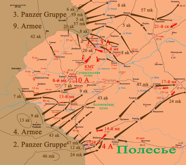 26 июня 1941 года значительная часть 14-го механизированного корпуса, по-прежнему, действовала в оперативном тылу 2-й немецкой танковой группы.