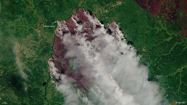 2021 год был отмечен серией «беспрецедентных» пожаров, охвативших торфяники Сибири на площади более 17 миллионов гектаров и затронувших подстилающий вечную мерзлоту. Дым от пожаров достиг Монголии, Нунавута (Канада), Гренландии и, впервые, Северного полюса[36][37], а мониторинг города Якутск зафиксировал PM 2,5 на уровне 395 микрограммов, и жителям было рекомендовано не выходить из дома[38].