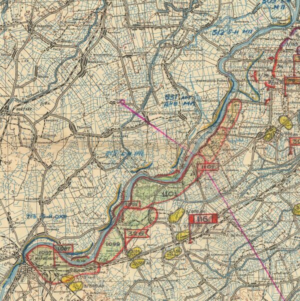 24 августа дивизия после 15-ти минутного артиллерийского наступления перешла в атаку и сумела немного продвинуться вперёд. На следующий день, 25 августа, 1097-й и 1101-й сп сумели продвинуться вперёд почти на целый километр, однако к вечеру 25 августа противник сумел подтянуть свежие силы пехоты, танки, артиллерию и оказал нашим наступающим частям серьёзное сопротивление.