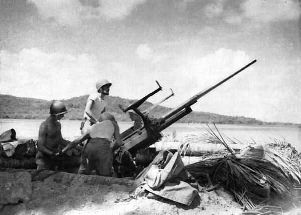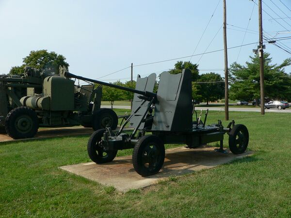 В Великобритании в 1937 году было решено приспособить для установки на полевые лафеты 40-мм пушки QF 2 pdr AA, известные под неофициальным названием «пом-пом». Данные орудия, ведущие свою историю с автоматических пушек Максима, активно использовались на кораблях английского флота. Однако сухопутный вариант орудия, существовавший как в одиночных, так и спаренных установках, был признан неудачным — орудия оказались слишком громоздкими для полевых частей; кроме того, пушка имела невысокую начальную скорость. Выпуск сухопутного варианта «пом-пома» оказался весьма ограниченным, орудия использовались только для ПВО важных объектов. После принятия на вооружение и разворачивания массового производства лицензионного «Бофорса» сухопутные «пом-помы» отправили обратно на корабли[110]. Спаренная зенитно-противотанковая пушка на базе «пом-пома» использовалась японской армией[111].