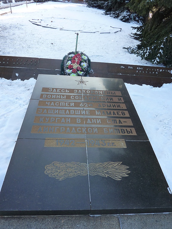 • Памятник с именами погибших воинов дивизии на Мамаевом кургане в Волгограде[86].