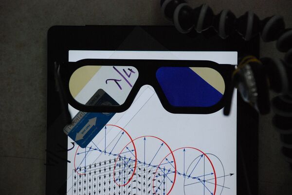 Левое и правое стекло пропускает изображение только со своей поляризацией. Делятся на подвиды, использующие линейную и круговую поляризацию.