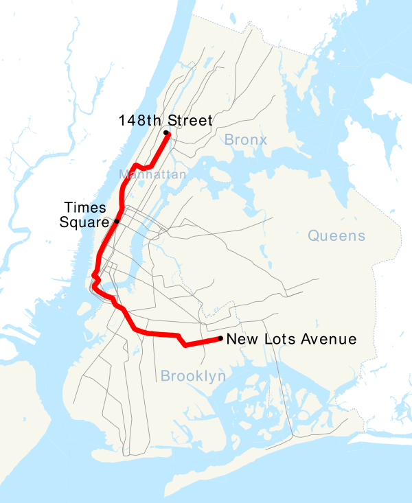 Гарлем — 148-я улица Таймс-сквер — 42-я улица (ночью) Нью-Лотс-авеню (круглосуточно, кроме ночи) |