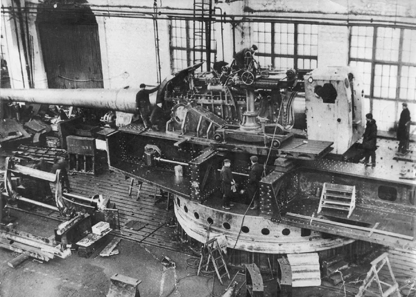 Изготовление артиллерии главного калибра велось сложно, так как прошлый опыт, в основном, был или утерян, или забыт. Для производства крупнокалиберной артиллерии требовалось обновить и создать новые производства, обеспечить применение специальных высоколегированных сталей и высококачественного литья. Ведущие предприятия по производству 406-мм артиллерийских орудий и башенных установок к ним были определены к началу 1937 года[15].