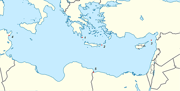 Штаб командующего эскадрой находился у берегов Туниса в так называемой «точке 3». В эту же самую точку заходили скрытно приходившие с Северного флота подводные лодки. В заливе Мерса-Матрух, на границе Ливии и Египта, находилась «точка 52», получившая неофициальное название «деревни Селивановки» (в честь одного из командующих 5-й ОпЭск). В «точке 52» собирались надводные корабли, прибывавшие в Средиземное море с Северного, Балтийского или Черноморского флотов. В «точке 10», расположенной у греческого острова Лемнос, отстаивались советские разведывательные корабли. «Точка 70» располагалась у берегов Франции и Италии. У острова Крит, а также в ряде других мест Средиземноморья, располагались и некоторые другие точки[20].