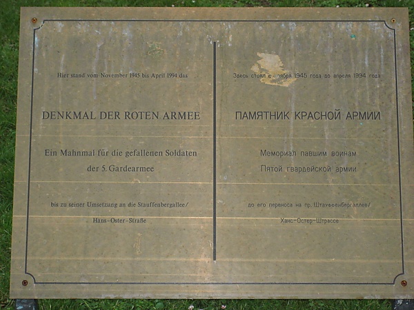 - Мемориал павшим воинам армии был установлен в Дрездене, на Albertplatz в ноябре 1945 года. Перенесён в район Штауфенбергаллее в апреле 1994 года.