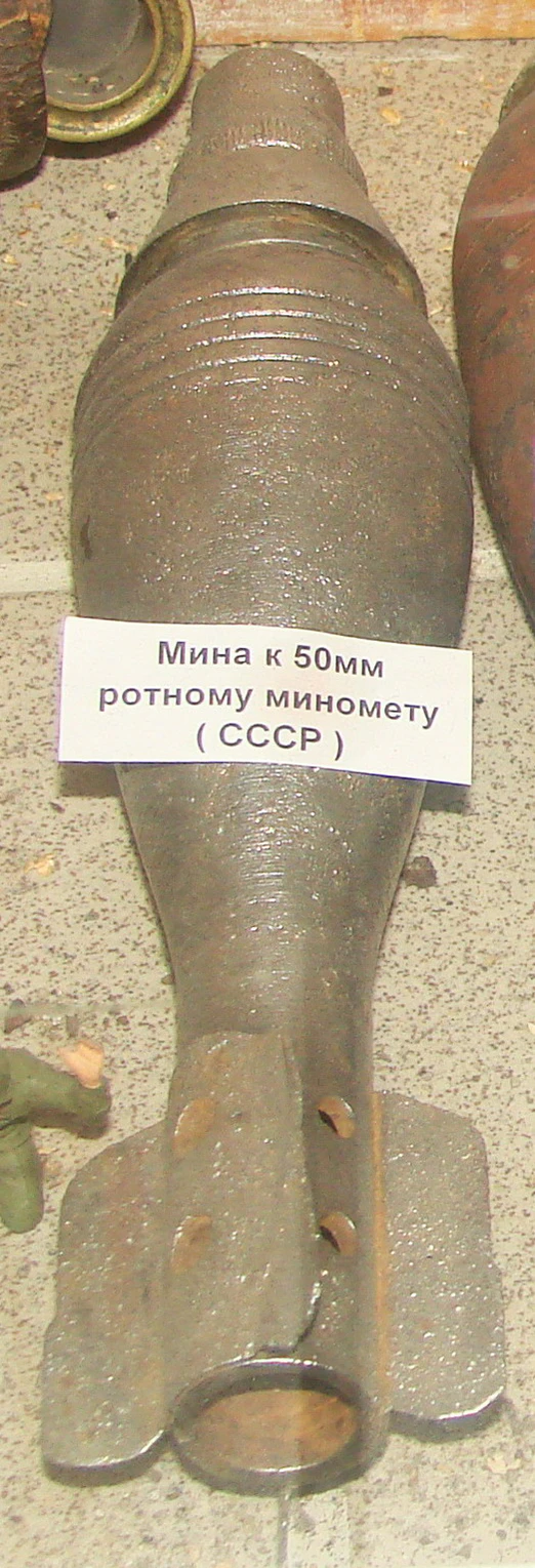 - 50-мм ротный миномёт обр. 1940 года — модифицированный вариант, в котором была уменьшена длина миномёта и упрощена конструкция дистанционного крана. Плита миномёта глубокой штамповки имела прикрытие (козырёк) от газов, выходящих через дистанционный кран, что предотвращало ожоги расчёта. Амортизатор имел только один цилиндр. Однако устранить сбивание уровней прицела при работе поворотного механизма и ненадёжность крепления прицела в усовершенствованной конструкции не удалось[6].