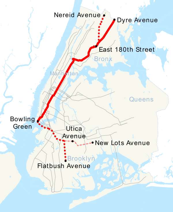 Маршрут разделяется на две части к северу после East 180th Street, далее вместе с 2 идёт по IRT White Plains Road Line до Nereid Avenue, а по IRT Dyre Avenue Line до Dyre Avenue.