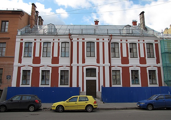 Объект культурного наследия народов РФ. Объект № 7810146000 (БД Викигида) - Дом № 13 — дом А. И. Троекурова, построен в 1720-е-1730-е годы, образец гражданской архитектуры первой трети XVIII века.