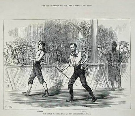В 1870-х гг. 6-дневный бег стал популярным зрелищем. Он длился 142 часа; начинался вскоре после полуночи понедельника и заканчивался вечером в субботу, соблюдая викторианское воскресенье. В 1877 году до 70 000 зрителей купили билеты, чтобы посмотреть схватку скороходов. Для увеличения усилий спортсменов и чтобы заинтересовать зрителей, делали и другие виды 6-дневного сверхмарафона — «12 часов в день, 72 в неделю», 6x10 часов, 6x6 часов… Фактически это был уже этапный бег. Иногда был даже 7-дневный бег.