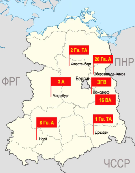 Расстояние от места дислокации дивизий армии до границы с ФРГ составляло около 5 километров. Дивизии армии контролировали фульдский коридор — участок, который считался предполагаемым противником, как один из наиболее вероятных направлений вторжения в Западную Европу Вооружённых сил стран-участниц Варшавского договора. Со стороны ФРГ, напротив позиций 8-й гвардейской общевойсковой армии, находились V и VII корпуса США Центральной группы армий НАТО.