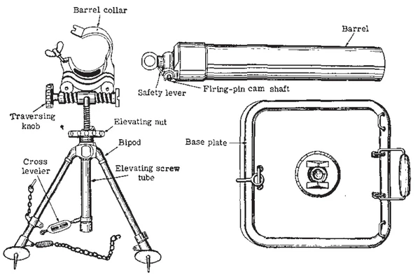 Все эти народы внесли свои собственные изменения и нововведения, но получившееся оружие оставалось модернизацией миномёта Брандта образца 1927/31, или даже Брантовской модели 1926 года[9]. Только британские 3-дюймовые миномёты и немецкие 8-cm s.G.W.34 разрабатывались полностью самостоятельно.