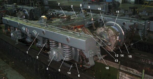 | Применена шпинтонная связь буксы колёсной пары и рамы тележки, в узле скольжения применены полимерные материалы | ноябрь 1987 | 0129 | 0460 | январь 1988 | 8834 | 8119 |