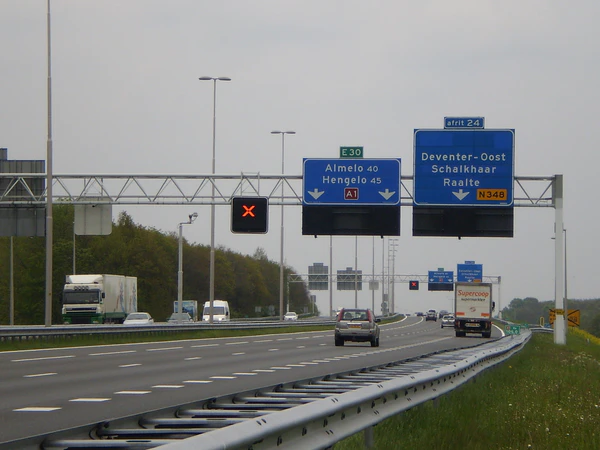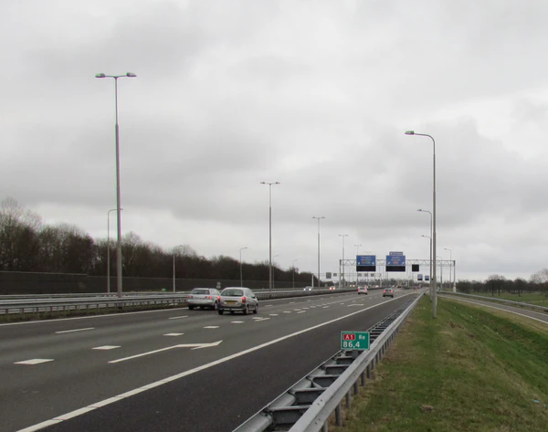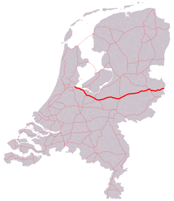 , соединяющее города Утрехт и Зволле. Отсюда на восток вновь начинаются «пиковые» полосы. Через пару километров шоссе пересекает границу с провинцией Гелдерланд.