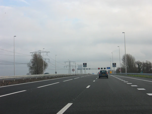 , проходящая через города Алмере, Лелистад и Эммелорда. После развязки реверсивные полосы заканчиваются, а шоссе сужается до 2×3 полос.
