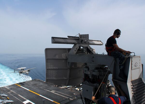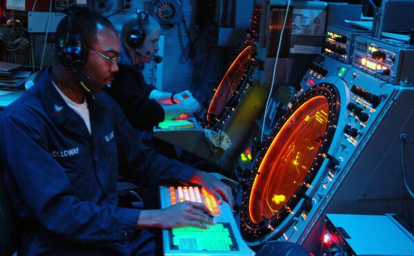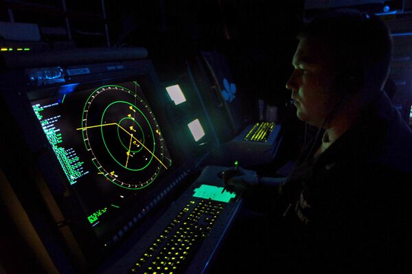 Специальный индикатор в центре управления полётами (англ. Air Traffic Control Center) авианосца позволяет направить самолёт по определённому азимуту, по которому он выйдет в точку на расстоянии 450 м от места касания, где будет принят на сопровождение оператором посадки, использующим радар AN/SPN-42 или AN/SPN-46[5].