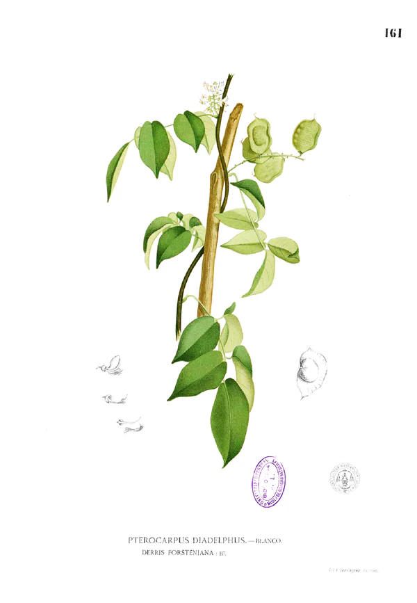 Лианы или кустарники. Ветви голые или очень редко волосистые, многочисленные, восходящие или раскидистые. Листья 5-9-цветковые; рахис 30-45 см, включая черешок 8-14 см; листовые пластины от продолговатых до продолговато-ланцетных, 10-15 x 3,5-7 см, субкоричневые, обе поверхности, вторичные жилки голые по 5-7 с каждой стороны от от средней жилки, основание округлое, вершина коротко заострённая иногда тупая. Псевдопаникулы пазушные или терминальные, узкопирамидальные, 12-35 см, компактные, коричневые или красновато-волосистые; Очень короткий цветонос. Цветки 8 мм. Чашечка колокольчатая, 3 мм, очень редко волосистая, верхушка усечённая или тёмно-дельтовидно-зубчатая. Венчик от беловатого до пурпурно-красного цвета, 8-10 мм. Плоды — бобы, 5-10 × 2,5-3 (-4) см, с видимыми сетчатыми жилками; оба шва с широким ободком 3-8 мм. Семена: 1-3 на бобовое зерно, продолговато-лучистые. Период цветения: май-июнь, плодоношение: август-ноябрь[2][3].