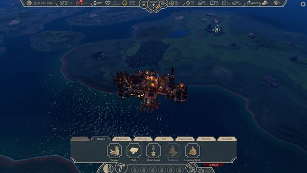 Технологическое развитие позволяет открывать новые типы зданий, улучшать существующие системы, отвечающие за подъёмную силу, скорость передвижения и общую прочность города, а также совершенствовать моральное состояние его обитателей. Особое внимание уделено разработке и улучшению средств обороны и нападения, таких как защитные башни, артиллерийские орудия и боевые самолёты, поскольку игровой мир населён агрессивными небесными пиратами. Разбойники представляют постоянную угрозу, совершая налёты на летающий город и беззащитные поселения на земле — игроку необходимо отражать их атаки и активно им противодействовать, исследуя и уничтожая их укреплённые поселения[7].