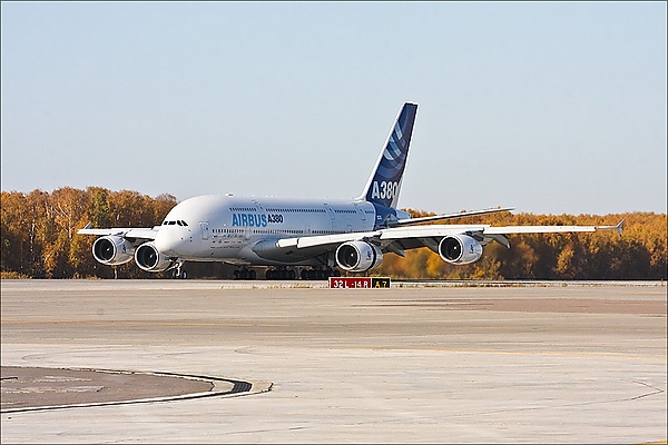 - 16 октября 2009 года в 11:56 по пути из Тулузы в Сеул А380 совершил первую посадку на территории России — в московском аэропорту Домодедово — единственном в тот момент в стране, готовом принимать подобные самолёты.