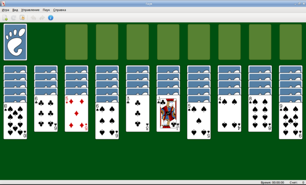 - Паук — варианты с одной, двумя и четырьмя колодами карт