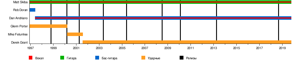 - Дэн Андриано — бас-гитара/вокал (1997 — настоящее время)