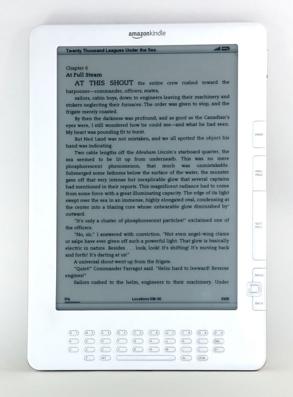 книг. Экран с диагональю 9,7 дюйма имеет разрешение 1200 x 824 пикселей. Время работы от батареи увеличилось до 4 дней при использовании 3G, и до двух недель при работе офлайн. Появилась ограниченная поддержка формата PDF (для возможности изменения размера шрифта требуется конвертация в один из форматов, позволяющих это). Добавлена поддержка технологии связи 1xRTT для случаев, когда сеть EVDO недоступна. Устройство позиционировать как более подходящее для чтения газет и учебников[6].