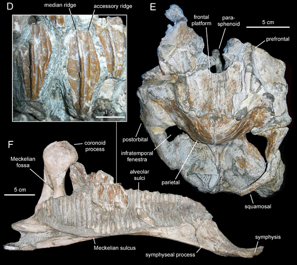 Предполагаемая почти вертикальная ориентация скуловой ветви заглазничной кости и предквадратного отростка чешуйчатой кости возникает по причине субгоризонтального положения чешуйчатой ветви заглазничной кости. В действительности, однако, у сочленённых черепов ламбеозавринов каудальная часть крыши черепа, в большей или меньшей степени, обычно наклонена каудовентрально относительно длинной оси максиллярного зубного ряда, поэтому предквадратный и скуловой отростки выступают ростровентрально. Тем не менее, у многих, хотя не у всех образцов ламбеозавринов предквадратный отросток чешуйчатой кости и проксимальная часть скуловой ветви заглазничной кости почти перпендикулярны чешуйчатой ветви заглазничной кости над подвисочным отверстием. Эти сведения указывают, что ориентация предквадратного отростка и скуловой ветви заглазничной кости аренизавра не является аутапоморфией.