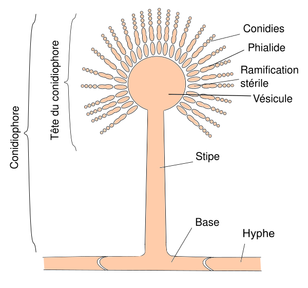 Под микроскопом аспергилл напоминает кропило, разбрызгивающее святую воду (конидии).