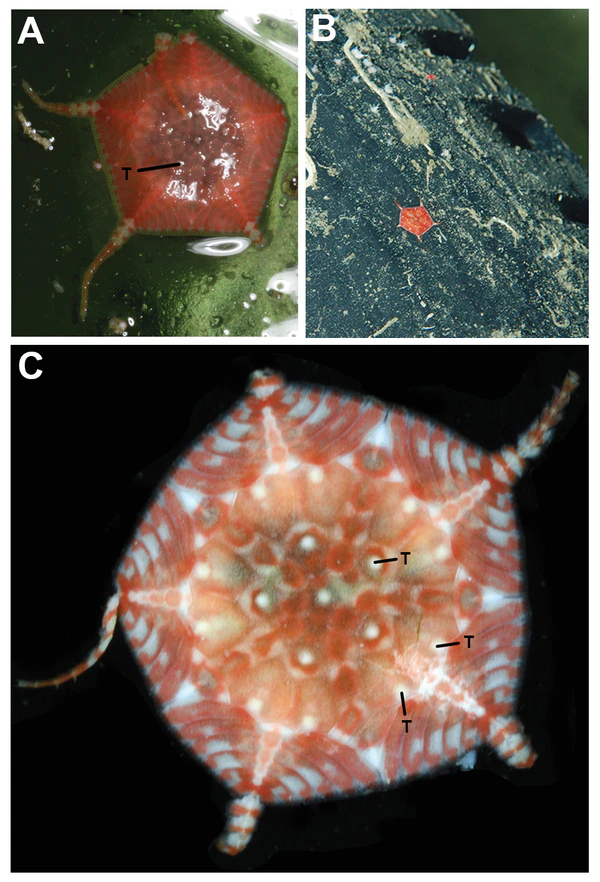 Морские иглокожие. Диск округлый; высокий (выше уровня рук-лучей). Дорсальный диск без гранул; с первичными пластинами; без шипов и чешуек. Пластина спинного диска без бугорков. Форма лучей неразветвленная; длина менее 2-кр. диаметра диска; покрытие без гранул/шипов/бугорков. Гребни лучей отсутствуют. Дорсальная пластина лучей развита. Дополнительная дорсальная пластина лучей отсутствует. Имеется вентральная пластина руки[1].