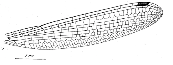 Крыло узкое, удлиненно-овальное, от птеростигмы до узелка его ширина почти одинакова. Постнодальных поперечных жилок 14—15. R3 начинается на две ячейки дистальнее узелка. Дистальная сторона четырёхугольника более чем в два раза длиннее проксимальной. Первая ветвь анальной жилки гребенчатая, с правильно чередующимися прямыми и изогнутыми ветвями. Общее число поперечных жилок сравнительно невелико; большинство ячеек прямоугольные. Крылья достигали 28 мм в длину[2]. Были быстрыми насекомоядными хищниками[1].