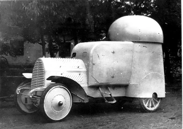 Малоизвестный факт — Австро-Венгрия была одной из первых стран, где начались разработки в области бронированных машин и были получены реальные результаты[3]. Ещё в 1904 году главный инженер фирмы Osterreichisches Daimler Motoren AG (Austro-Daimler) в Винер-Нойштадте Пауль Даймлер (сын знаменитого Готлиба Даймлера) в инициативном порядке приступил к разработке бронированной боевой машины[1]. Впоследствии он привлёк к проектированию и ряд других инженеров завода. Работы продолжались до 1905 года и вылились в создание весьма передовой для своего времени машины. Среди отличительных особенностей броневика числились полный привод, полностью закрытый бронекузов обтекаемых форм, расположение пулемёта в сферической башне кругового вращения.
