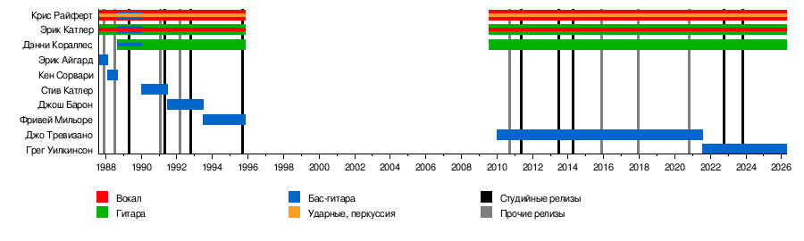 - Крис Райферт — ударные, ведущий вокал (1987–1995, 2009–настоящее время), бас-гитара (студия, 1988–1990)
