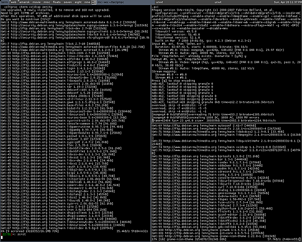 Awesome[3] — динамический оконный менеджер для X Window System. Его разработка началась в сентябре 2007 года в результате ответвления от dwm. Это миниатюрный и быстрый оконный менеджер, поддерживающий несколько вариантов расположения окон (например, «плавающий», когда положение окон не фиксируется, и пользователь может перетаскивать их, как в большинстве популярных менеджеров). Awesome, как фреймовый оконный менеджер, стремится предоставить всё необходимое для полного управлениями окнами без помощи мыши.
