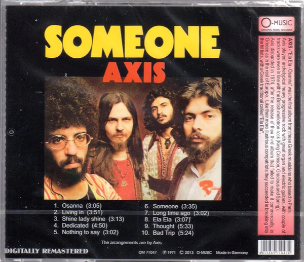 | Axis[32] | (CD, Album, Reissue, Remastered) | O-Music — Germany | OM 71046 | 2013 |