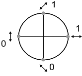 - фотон поляризован вертикально или горизонтально (0° или 90°);