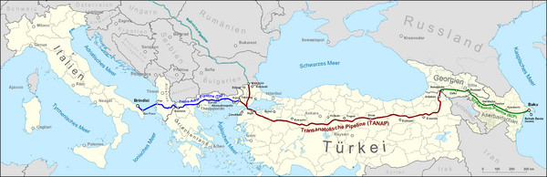 Для экспорта углеводородов создана инфраструктура, называемая «Южный газовый коридор». Она включает нефтепровод Баку-Тбилиси-Джейхан (длина 1768 км, пропускная способность 1 млн баррелей в сутки), Южно-Кавказский газопровод (длина 693 км, пропускная способность 143 тысячи баррелей в сутки), Трансанатолийский трубопровод и Трансадриатический трубопровод (TAP) (соединяющие Шах-Дениз с Италией, через территорию Греции и Албании)[43], а также Сангачальский терминал[47].