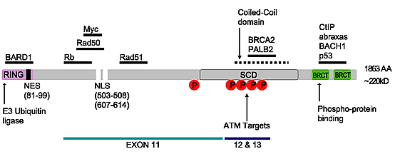 Белок BRCA1 содержит следующие домены[25]: