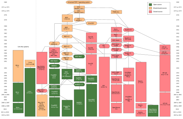 | Исходный код | исторически проприетарное, постепенный переход к открытому исходному коду с 1991 г. |