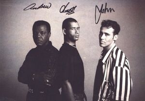 | «Золотой» состав Bad Boys Blue (1984—1989). Участники (слева направо): Тревор Тэйлор, Джон МакИнерни (передний план) и Эндрю Томас (задний план) | |