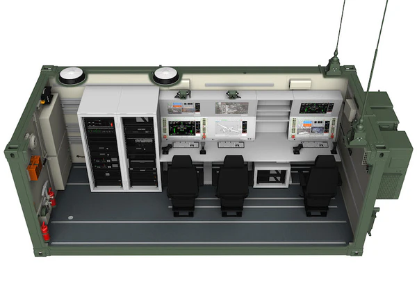 Кабина управления поднимает гидравликой поворотную направленную антенну на высоту 12 метров, и защищена от оружия массового поражения по стандартам НАТО. В кабине три рабочих места.