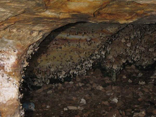 Южная Африка. B. petiolata широко распространены в нескольких странах на юге и востоке Африки: Зимбабве, Малави, Танзания, Лесото, ЮАР[1]. Они предпочитают тёплый умеренный или влажный субгумидный климат, со среднесуточной температурой, колеблющейся между максимумом 25 °C и минимумом 14,9 °C в январе и максимумом 15,7 °C и минимумом 5,3 °C в июне. Этот вид в основном обитает в защищённых пещерах. Он строит гнёзда, свисающие со стен пещер. Этот вид широко распространён и не находится под угрозой исчезновения[4].