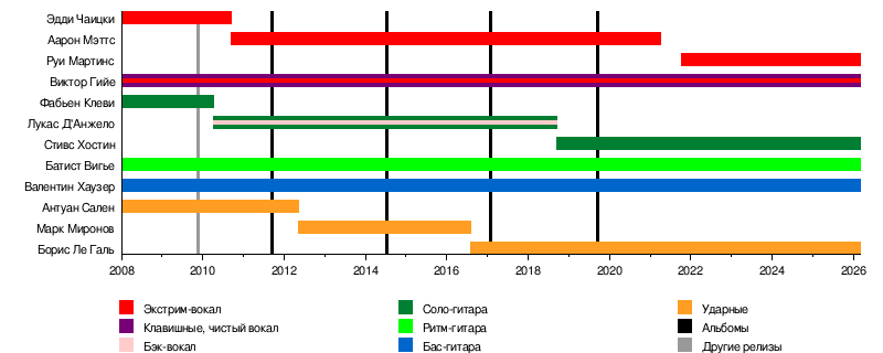 - Виктор Гийе — клавишные, чистый вокал, экстрим-вокал (с 2008)