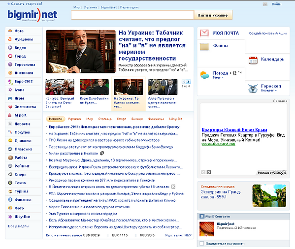 В то же время, портал bigmir)net не является самым популярным на Украине, уступая российскому порталу mail.ru.[19]