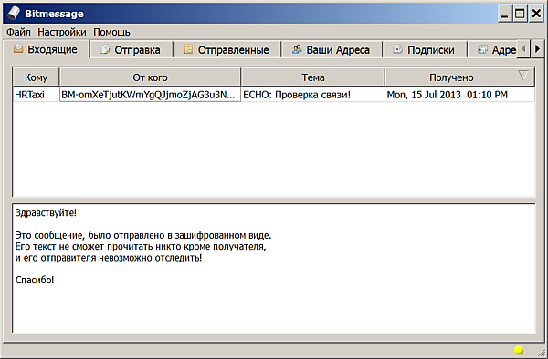 Сеть Bitmessage обрабатывает несколько тысяч частных сообщений в день[2].