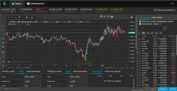 BitShares — публичная, основанная на блокчейне, торговая платформа реального времени с открытым исходным кодом. Она обеспечивает децентрализованный обмен активов, наподобие NYSE, но для криптовалют, без необходимости доверять централизованному фонду. BitShares обеспечивается криптовалютой «BTS», которая используется для платы за действия в сети или залога.