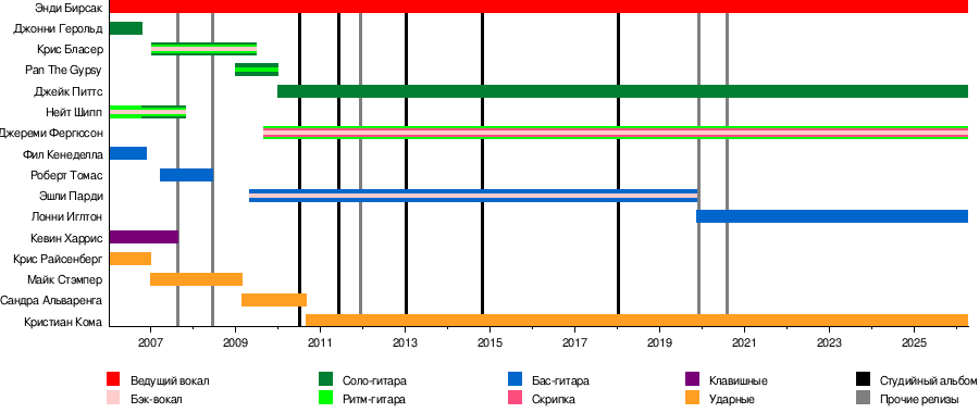 - Энди Бирсак (Andy «Six» Biersack) — вокал (2006-настоящее время)