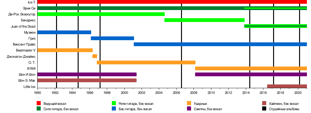 Ice-T написал музыку и тексты в соавторстве с ведущим гитаристом Эрни Си и взял на себя обязанности ведущего вокалиста, хотя чувствовал, что у него далеко не выдающиеся вокальные данные[3]. Первоначальный состав состоял из Музмэна на бас-гитаре, Beatmaster V на барабанах и Ди-Рока на ритм-гитаре.
