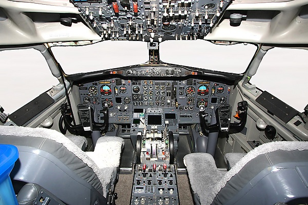 Картину успешного продвижения Boeing 737 портил один вопрос «политического» характера, поднимавшийся профсоюзами пилотов и другими организациями, настаивавшими на том, что такой самолёт должен управляться экипажем из трёх пилотов или двух пилотов и бортинженера. Такая постановка вопроса была, конечно, невыгодна авиакомпаниям, но, кроме того, мало применима для самого самолёта Boeing 737, ведь его пилотажная кабина изначально проектировалась под экипаж из двух человек, а для дополнительного члена экипажа в кабине имелось лишь откидное кресло. Осенью 1965 года полноразмерный макет кабины пилотов Boeing 737 был показан представителям ассоциации пилотов авиалиний (ALPA, Air Lines Pilots Association) и Федерального управления гражданской авиации (Federal Aviation Administration, FAA). Конечно, специалисты FAA не могли принять никакого решения, касающегося сертификации, на основе только простого макета, лишённого каких-либо рабочих функций. Зато пилоты United Airlines очень быстро дали знать о своём несогласии с показанной макетом концепцией двучленного экипажа. Спустя год, для испытания распределения рабочей нагрузки на экипаж, был использован уже динамический макет кабины. И снова группа пилотов United Airlines приняла решение в пользу экипажа из трёх пилотов.