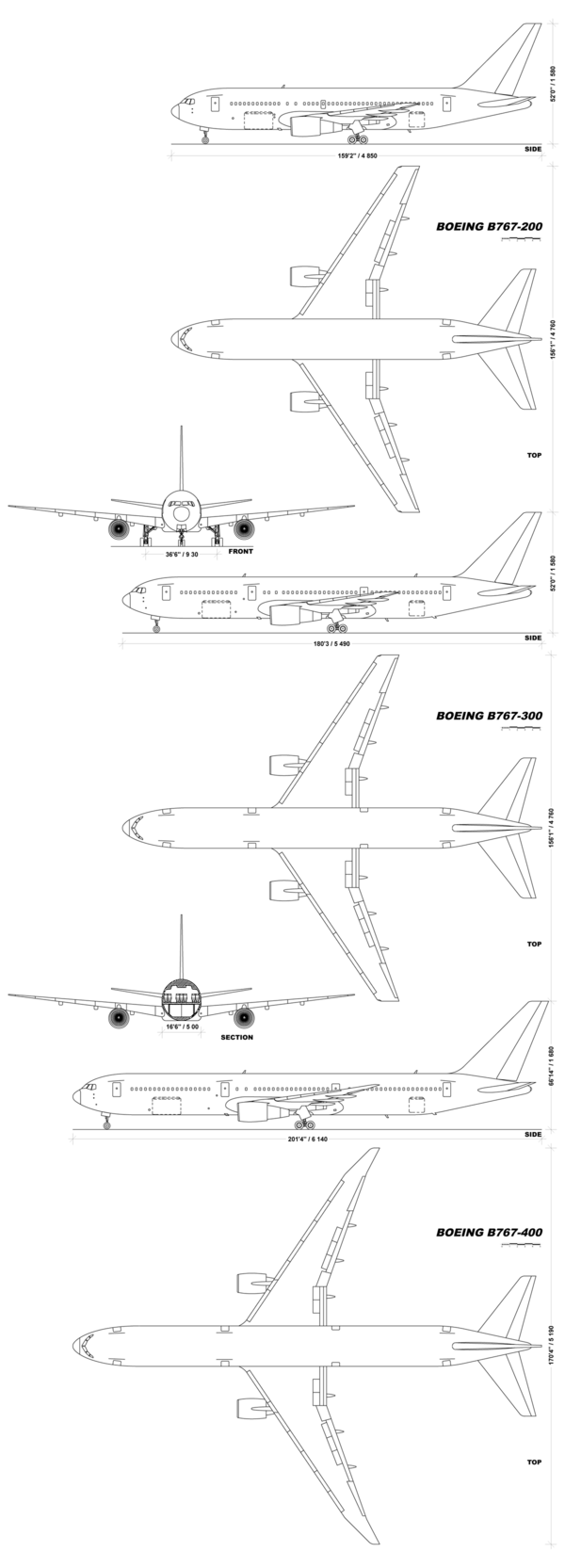 | 767-200 | 767-200ER | 767-300 | 767-300ER | 767-300F | 767-400ER | |