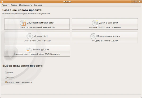 Brasero — свободная программа для записи CD и DVD для UNIX-подобных операционных систем, которая представляет собой графический интерфейс для cdrtools, dvd+rw-tools и libburn.